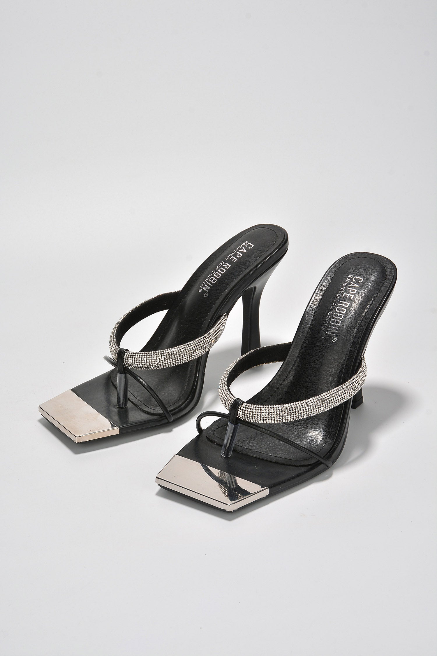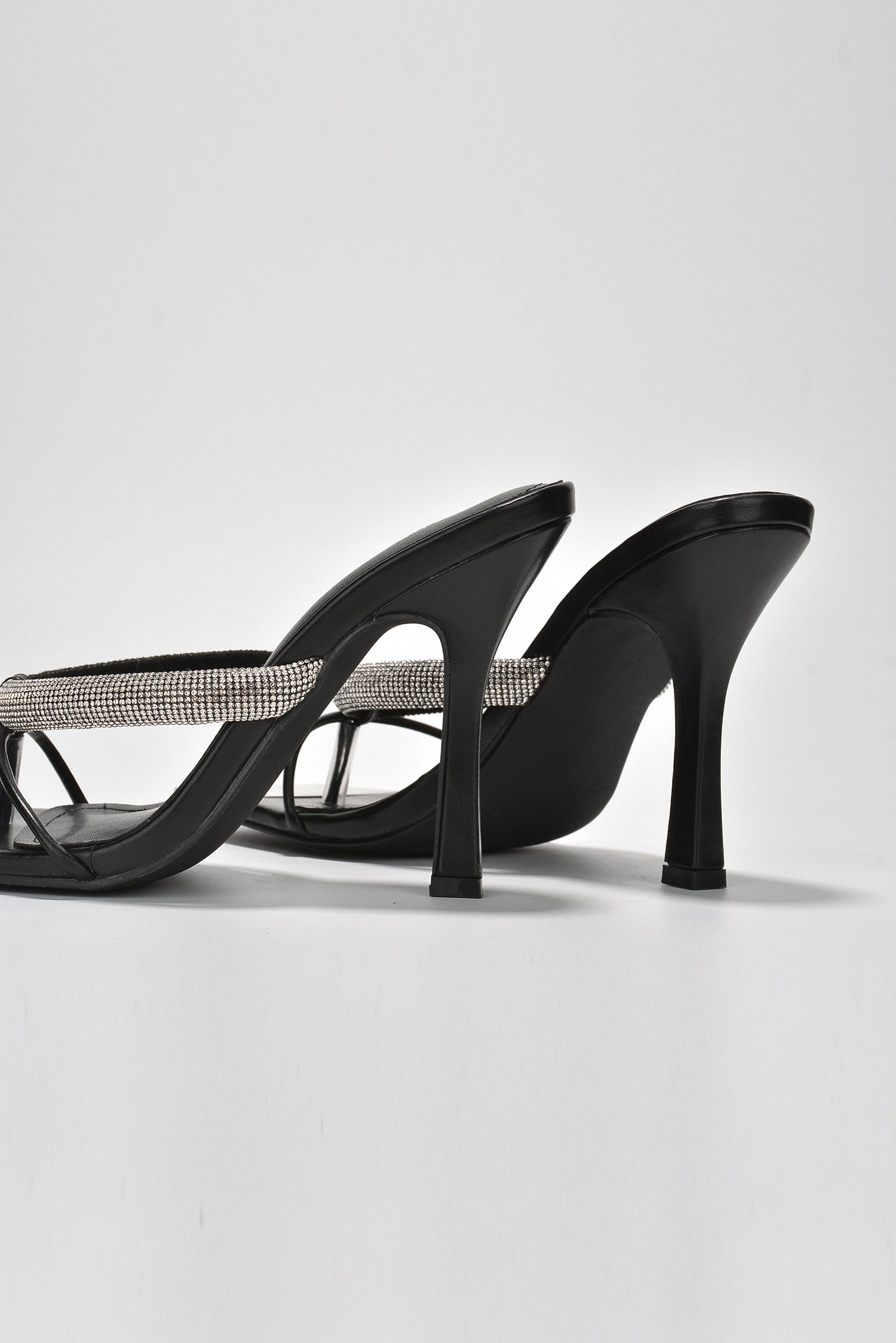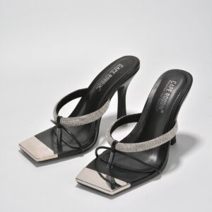 Nuniya Rhinestone High Heel Sandals – Black